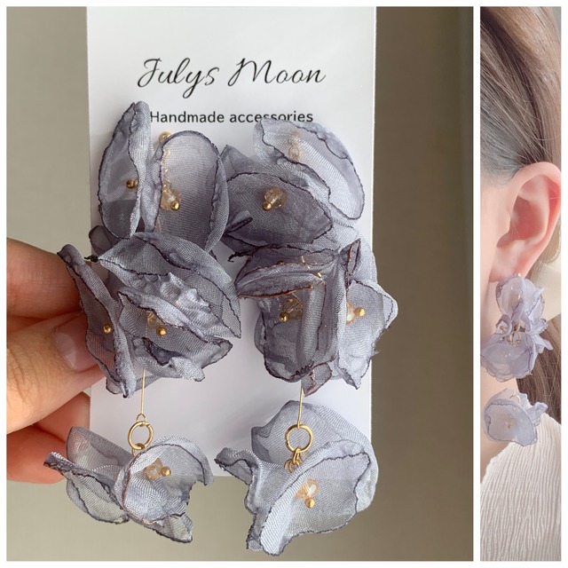シフォンフラワーと淡水パール ピアス/イヤリング