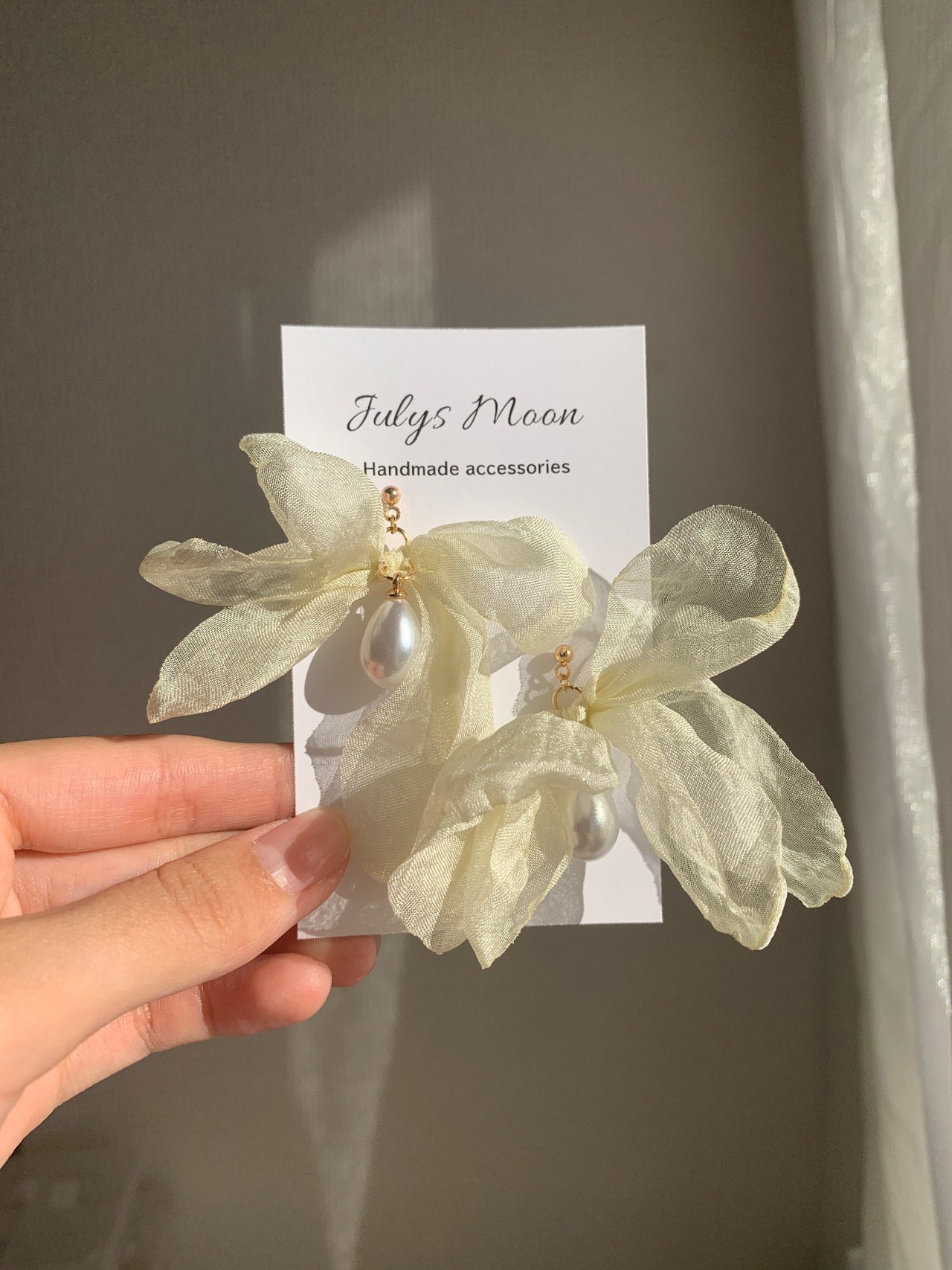 素材:金属、オーガンジーリボン、アクリルビーズ