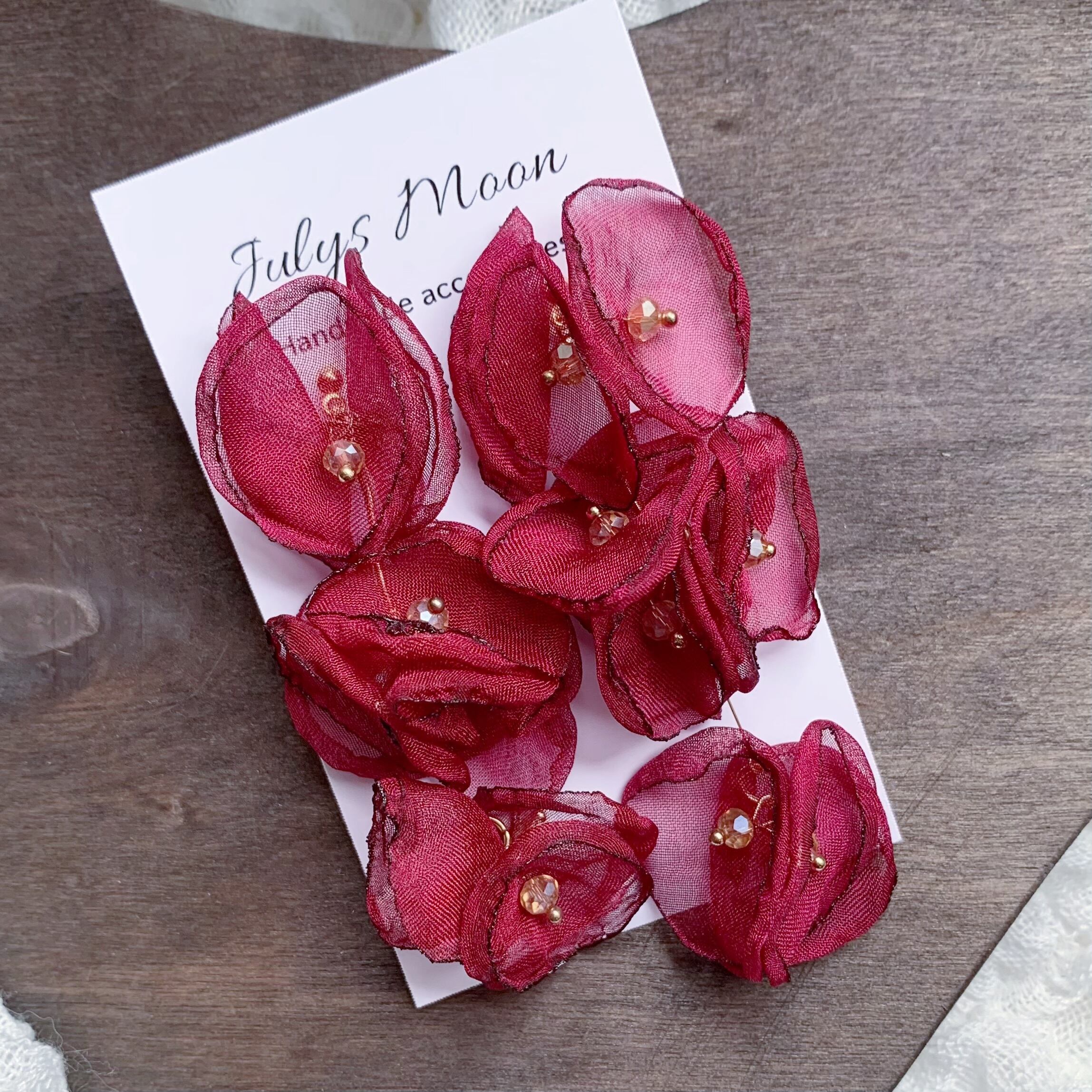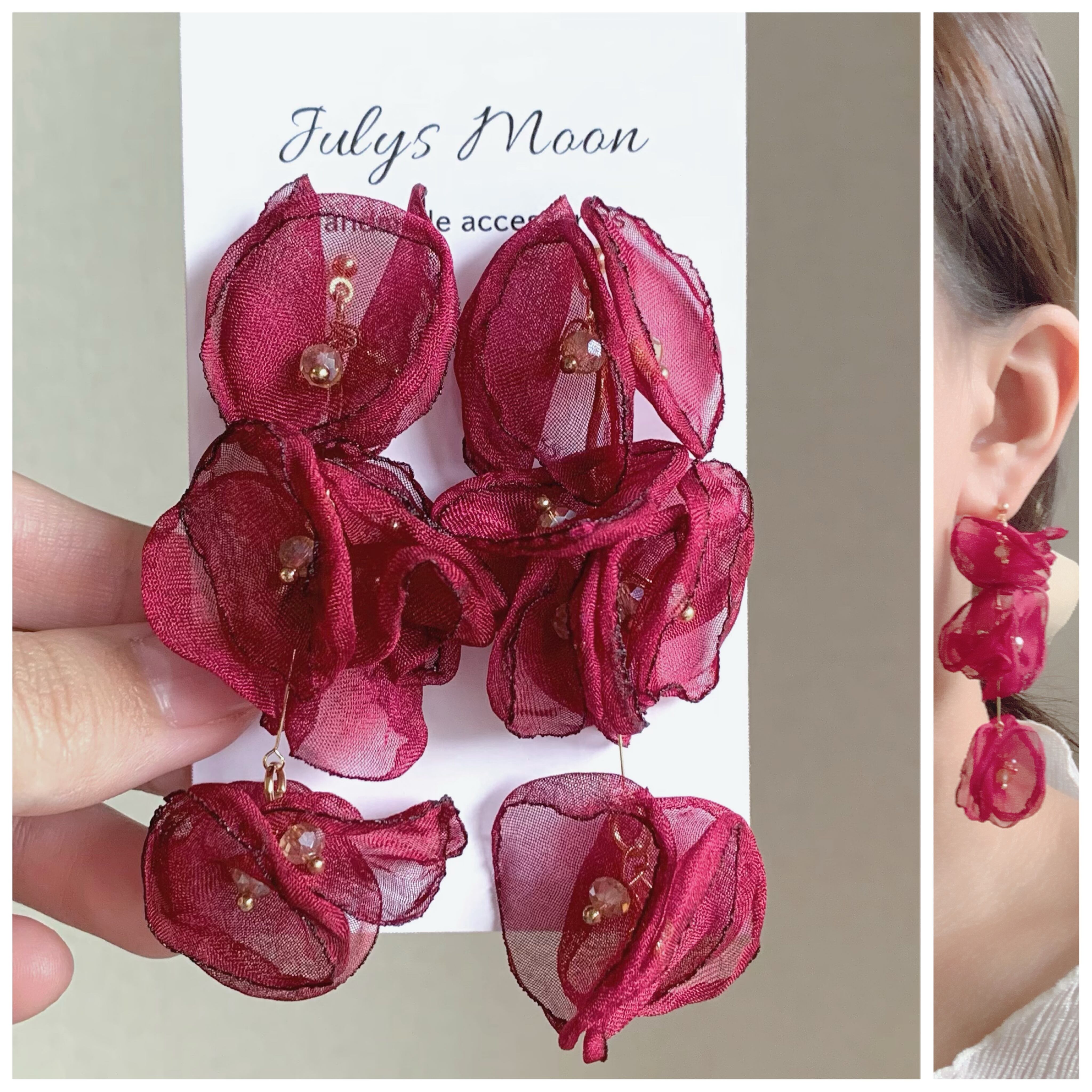 シフォンフラワー ピアス/イヤリング (ゴールド)