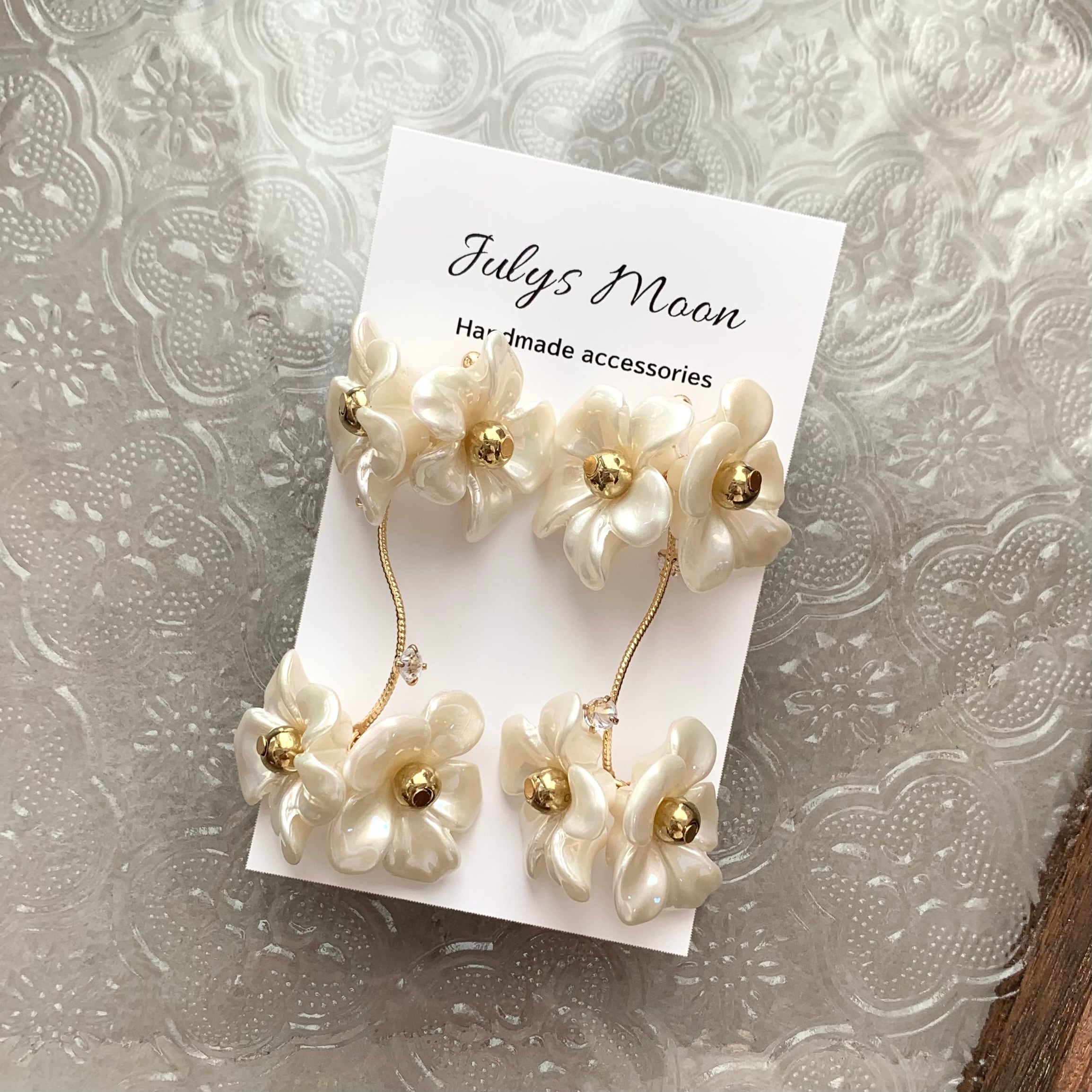 ホワイトフラワー ピアス/イヤリング (ゴールド)